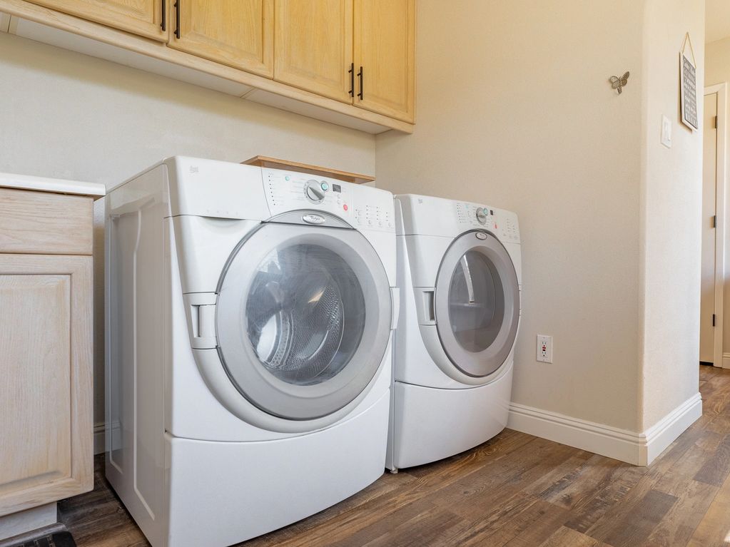 Entering the house from the garage you go right into our mud room/laundry room. It has ample hooks for coats and rubber mats for boots. There is another area inside the front door with hooks for coats so everyone can spread out.